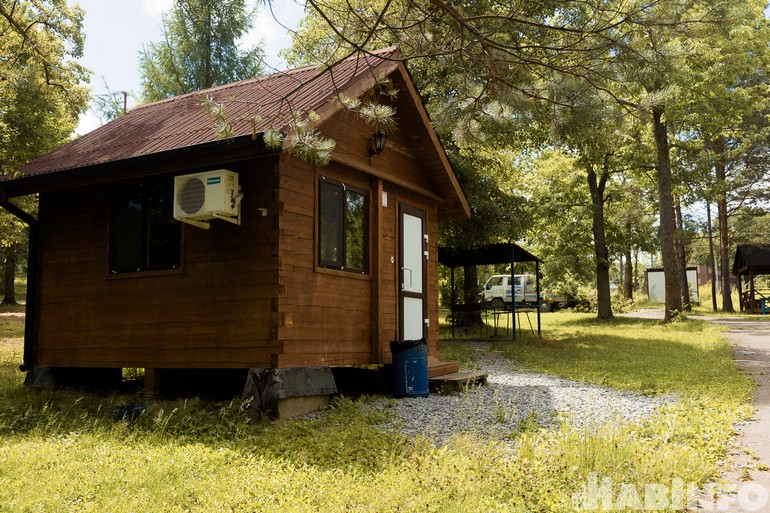 Расположен в с. Елабуга - 86 км от Хабаровска. Ночевка - в трехместном домике в лесу. Есть электричество и отопление.