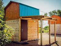 - Двухэтажный домик вместимостью 8 человек: комнаты на первом и втором этажах с отдельным входом. Летний душ, туалет на территории.