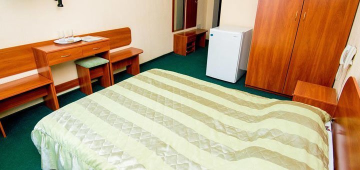 А так же на нашей базе отдыха имеется: собственная столовая, бассейн, бесплатная парковка, детская площадка, кафе, добавочная кухня, магазин, бильярд, места для отдыха с мангалом, охрана на территории.Номера эконом: Отдельный номер под ключ на 2, 3, 4, 5 человек. В номере есть все необходимое: деревянные новые кровати с мягкими матрацами и постелью, шкаф, тумбочки, вешалка, столик. Удобства рядом во дворе: душевые (горячая и холодная вода круглосуточно - своя скважина), умывальники, туалеты (смывные культурные).