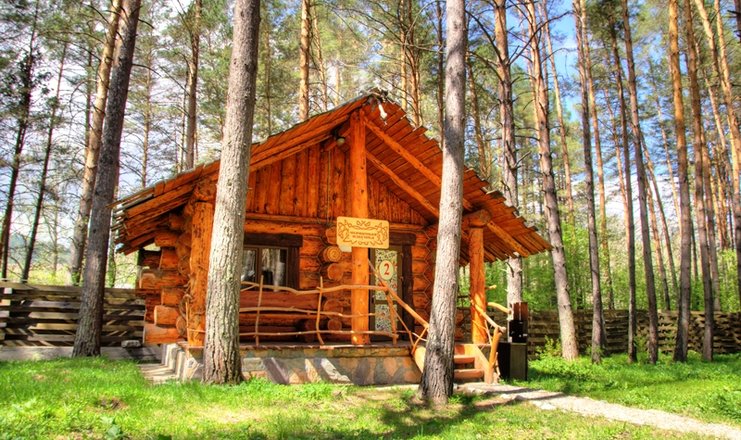 Просторная территория деревни расположена недалеко от основной трассы, при этом в тихом месте в окружении соснового леса. Пешеходные мостики, беседки и скамейки дополняют атмосферу уюта. Все постройки выполнены из массива кедра. Для размещения предусмотрены различные варианты корпусов - 2-4-местные избушки и коттеджи-терема. Во всех домах есть веранды, в 2-этажных коттеджах – балконы. В избушках удобства (душ, туалет) расположены внутри или в 30-50 метрах в теплом санблоке. Оснащение номеров включает самые необходимые предметы, без ТВ и холодильника. Вся мебель выполнена из дерева. Обязательно предусмотрена обеденная зона. В 3-4 местных домиках - 2-этажные кровати.
