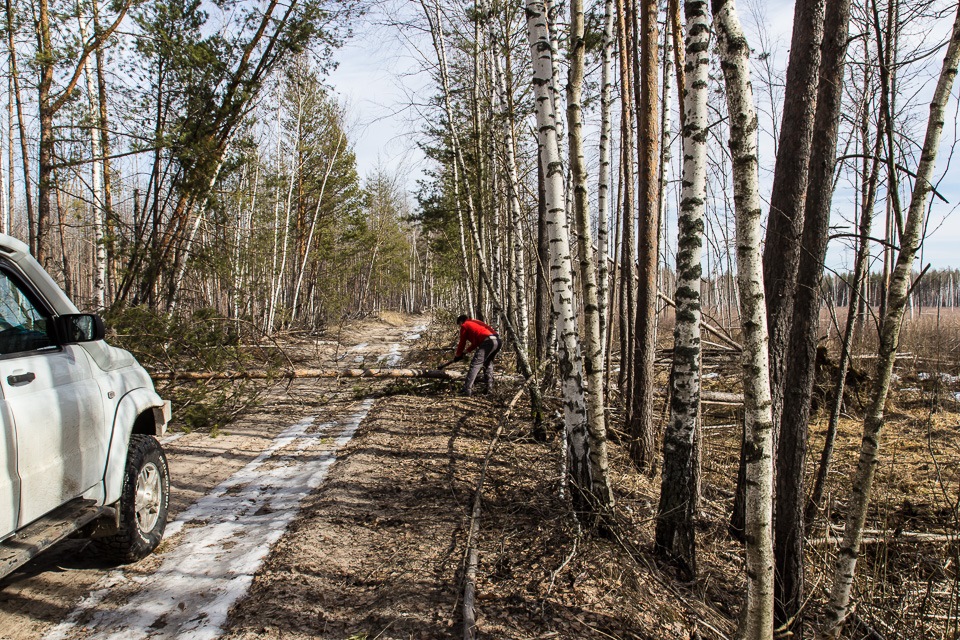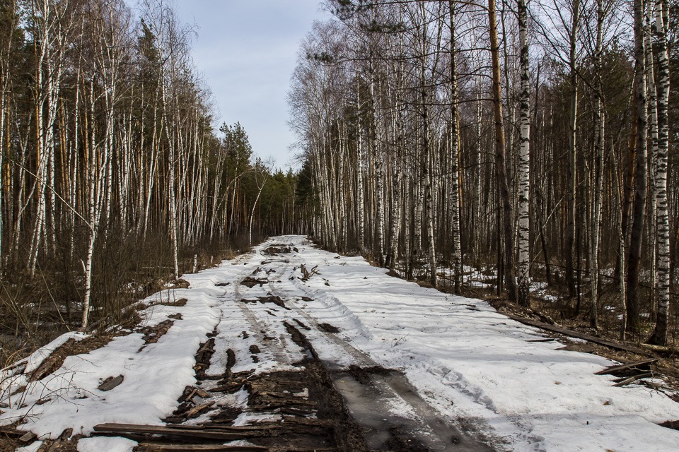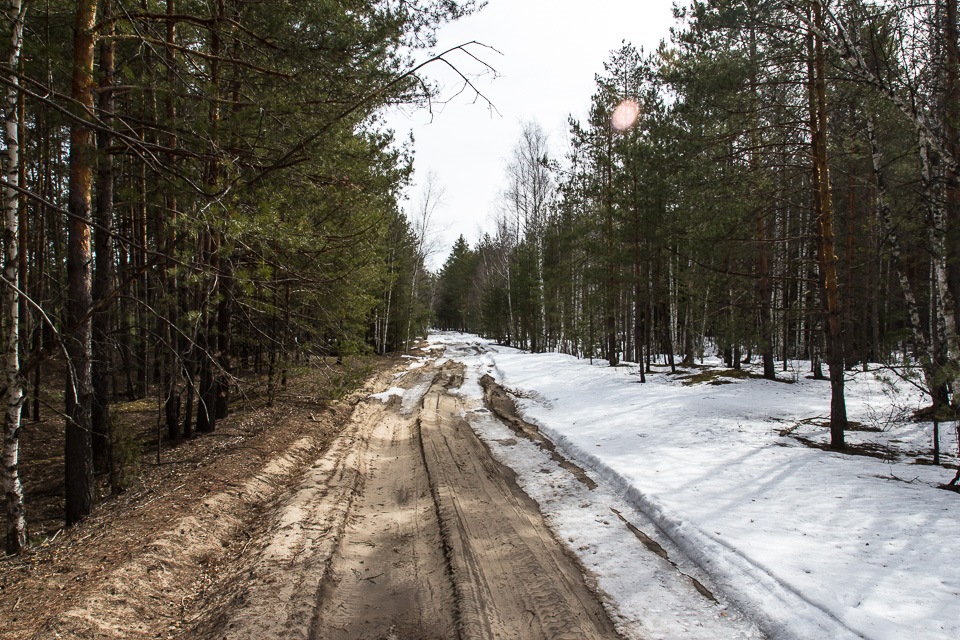 Свернули с трассы в сторону Келецких озер. В лесу еще зима.