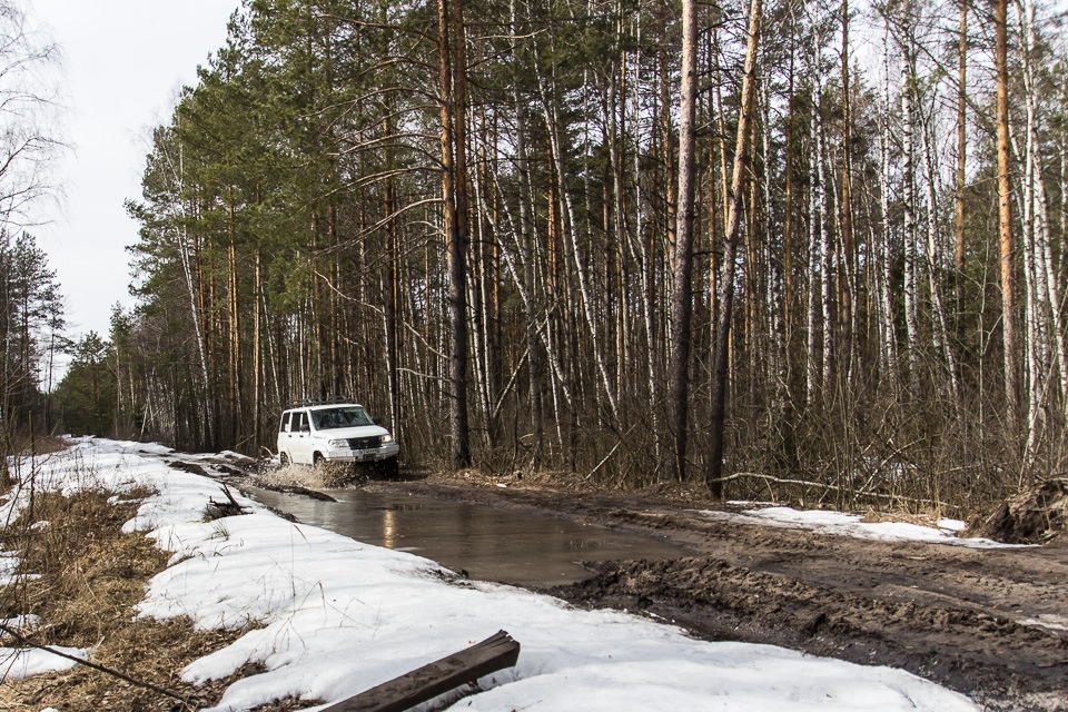А где-то все уже сухо. Вообще, изначально, это насыпная дорога для лесовозов, проложена по болотистой, торфяной местности.