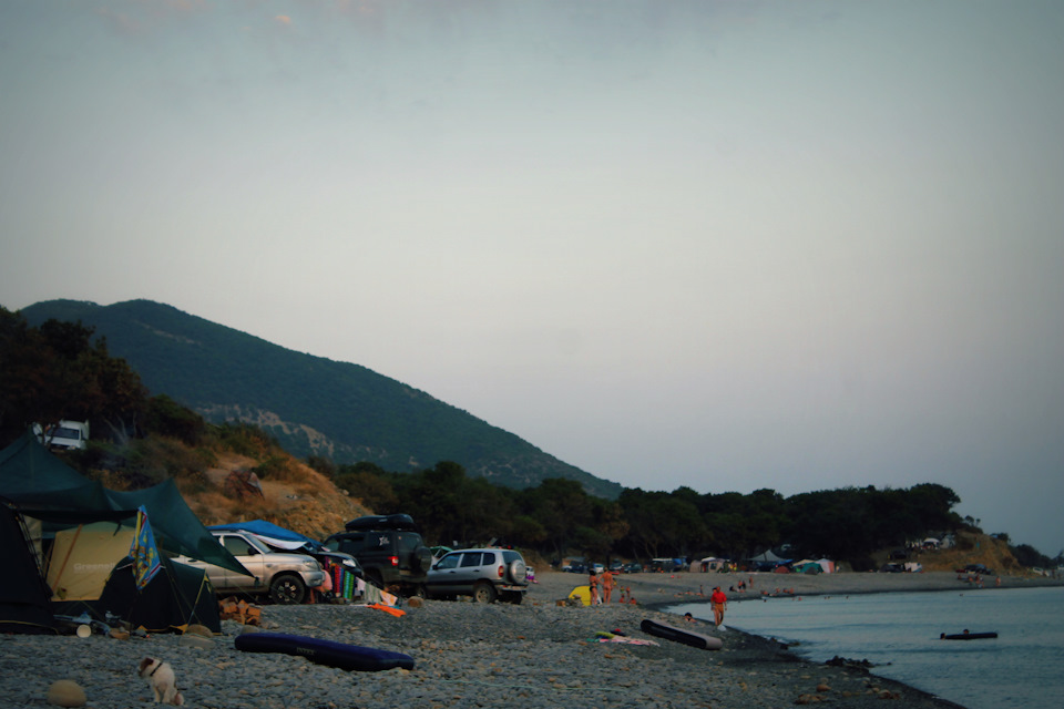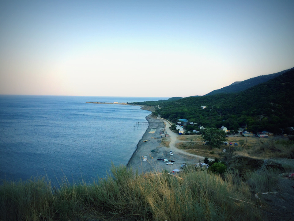 Надо, что то решать, в голове все эти 7 км и кучка клоунов попрошаек на въезде испортивших и так испорченное настроение, ехать дальше не вариант, просто физически машина не сможет проехать, решаем оставить уставших девушек в машине, а мужским коллективом прогуляться по берегу и осмотреться, обходим полянку по лесной тропинке и выходим к небольшой уютной бухте, народу в разы меньше, не сказал бы, что совсем чисто но гораздо чище, осматриваемся — как то подозрительно тут хорошо, решаем вернутся вдоль скалы по кромке воды и помозговать, что да как. Идем, водичка теплая и чистая, солнышко светит — боковым зрением замечаю голого мужика загорающего возле палатки, ну и, что ну хочет пусть загорает, проходим мимо двух обнаженных девушек коптящихся под скалой и до нас доходит! — Это же нудистский пляж, о котором писали на форумах, немного смутившись мы ускоряем шаг и вот уже наша бедная "тридцаточка" уставшая от 7-ми киломметрового бездорожья, решаем вернутся обратно, где видели людей перед утришем, разворачиваемся и едем. Клоуны на шлагбауме недовольно открывают шлагбаум и пропускают нас и вот мы уже на пляже под скалой. Тут чисто, народу немного, отдыхающие москвичи увидев наше намерение ехать дальше по гальке под скалу выбегают, размахивая руками и говорят, что нам не стоит даже пробовать, сядем 100%. Паркуем "Тридцаточку" вываливаем вещи и начинаем перетаскивать метров 800, подальше от всех.