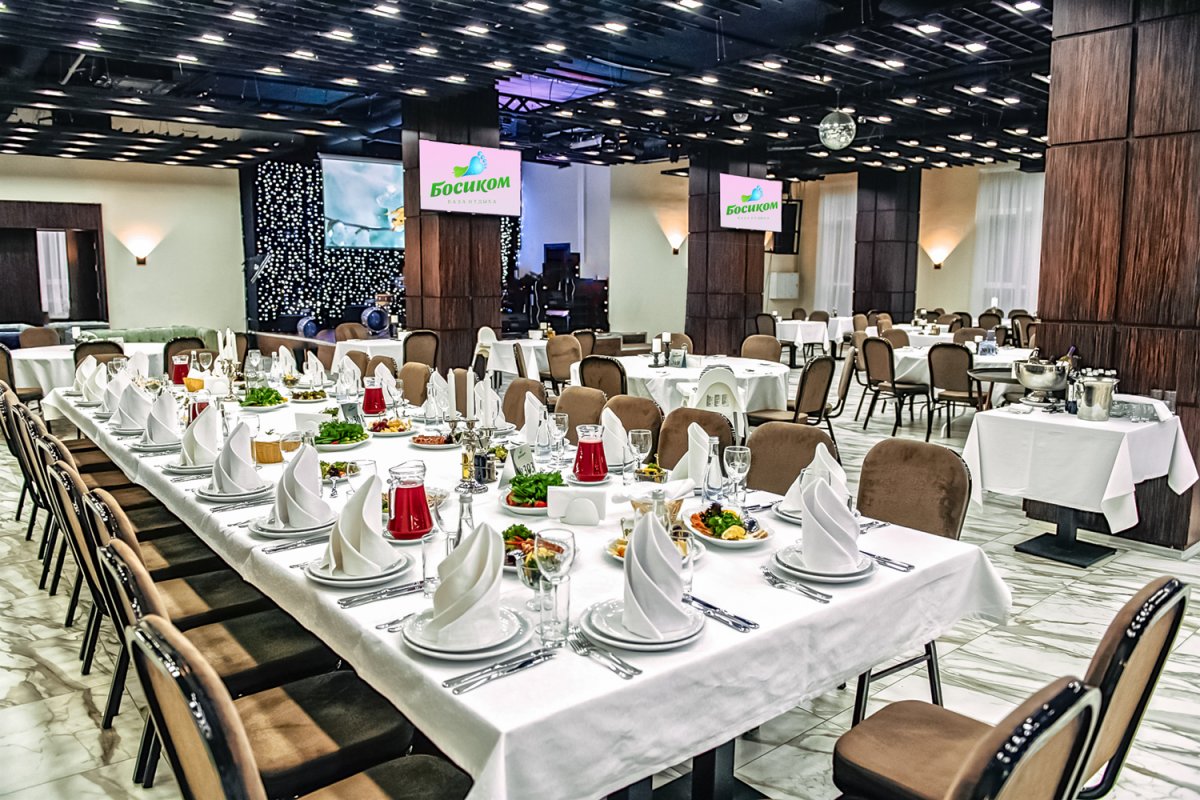 Особенности: Можно свои фрукты, Можно свои б/а напитки, Выездная регистрация, Музыкальное оборудование, Велком зона, Wi-Fi / интернет, Сцена, Проектор, TV экраны, Детское меню