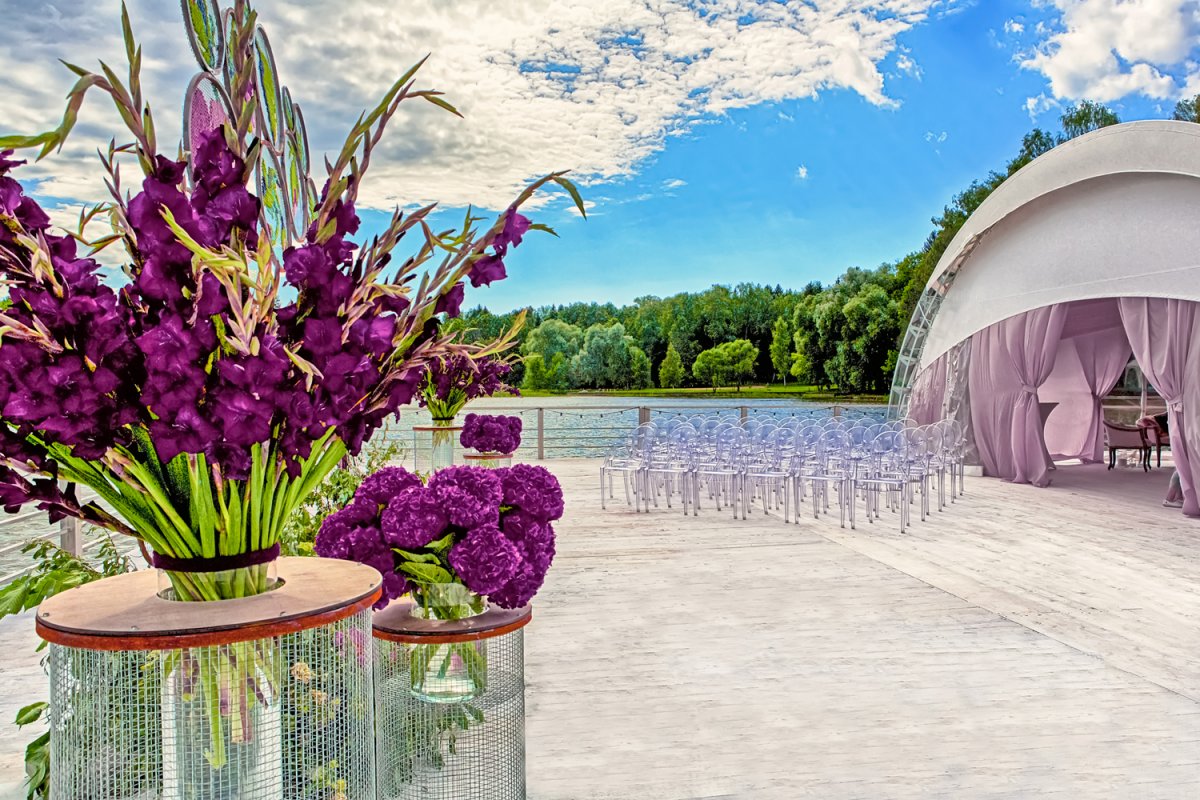 Такие просьбы часто связаны с необычным появлением жениха и невесты на церемонии. Бывает, просят организовать вертолетную площадку, что мы с удовольствием делаем. Несколько раз пара приезжала на гидроцикле, а однажды жених появился на флайборде. Как правило, мы решаем все эти вопросы в тандеме с агентством.