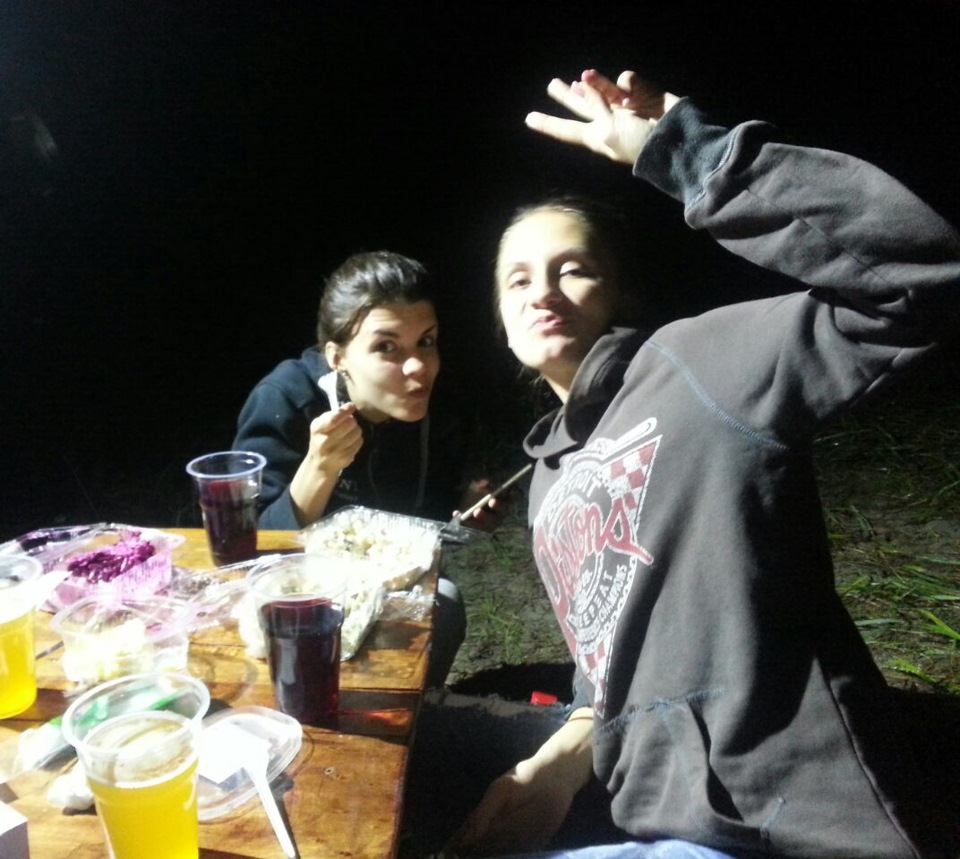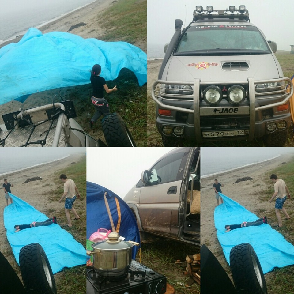 Мужчины у нас спали в палатке с налетевшими камарами, а девочки — в машине с налетевшими мухами))))