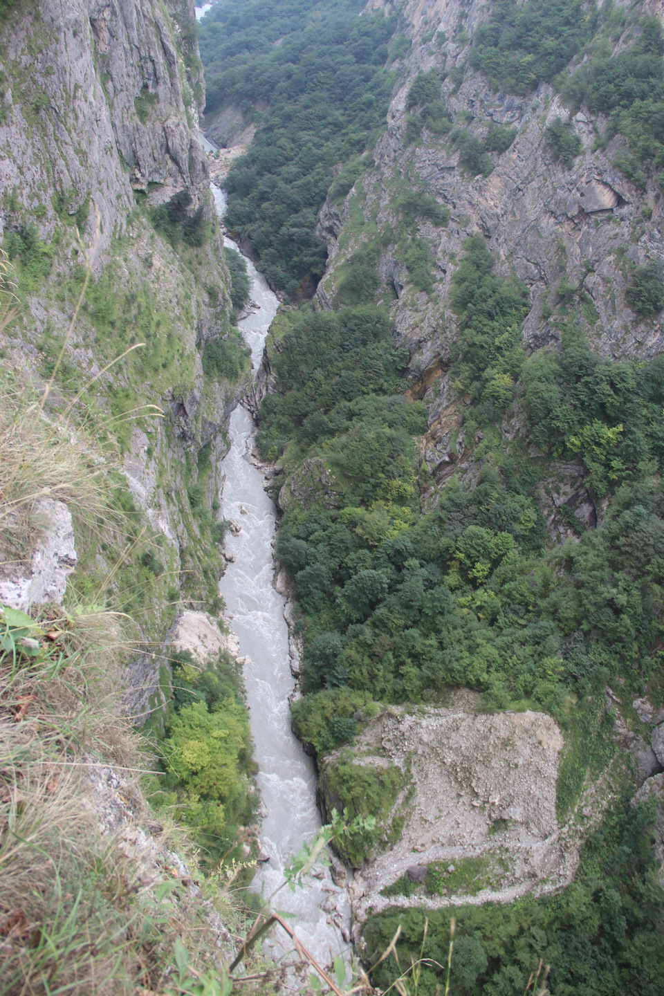 Внизу, а до низа довольно глубоко, бежит Черек Балкарский.