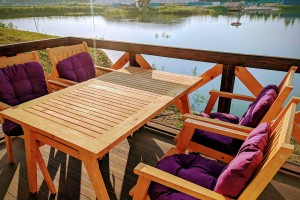 На нашей закрытой и охраняемой территории вокруг озера расположены четыре домика-коттеджа из соснового сруба, запах которых создаёт неповторимую и экологичную атмосферу. Внутреннее помещение трех каркасных домов обеспечено всеми удобствами и разделено на две комнаты: уютную гостиную и детскую комнату с двухъярусной кроватью. Наш отзывчивый персонал организует качественный сервис и сделает всё, чтобы ваш отдых был максимально удобным и ничто не мешало единению с природой. У каждого домика имеются свои мостки для желающих порыбачить, площадка с мангалом для шашлыка и пляж с чистейшим песком, шезлонгами и зонтами.