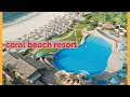 Буду немногословной. Корал Бич Резорт имеет свои плюсы и минусы. Последних совсем немого. Совершенно не впечатлила кухня, хотя повара стараются. Иногда заявленная «французкая» кухня походила на восточную и наоборот. Некоторые блюда совершенно не похожи на то, что должно быть. Например, блинчики хотелось бы потоньше. Отель расположен далековато от тусовок и ТЦ, нужно ездить. Внутри видно, что все старенькое, хоть за обстановкой и следят ревность, нужно обновление. Зато в гостинице классный сервис, давно такого обхождения не встречала. Море под боком, для детей и бассейн, и батут, и игровая площадка. Родителям можно спокойно отдохнуть. Хорошее место для непритязательных путешественников.