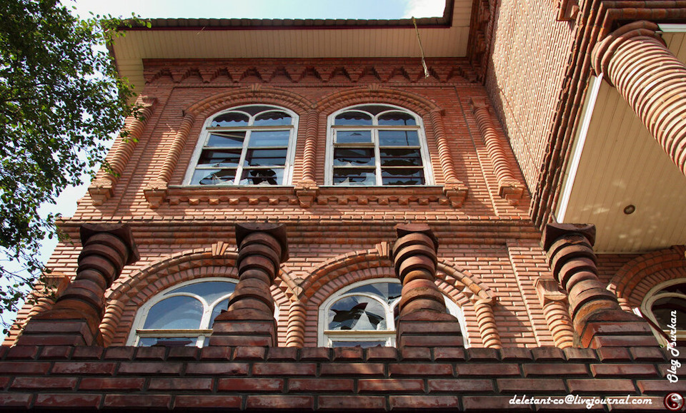 Еще пару слов стоит уделить архитектурным изыскам. Каждый кирпичик выточен вручную на шлифовальных станках. Так украшали храмы на Руси, а в 90-е это направление получило название цыганский тюнинг.