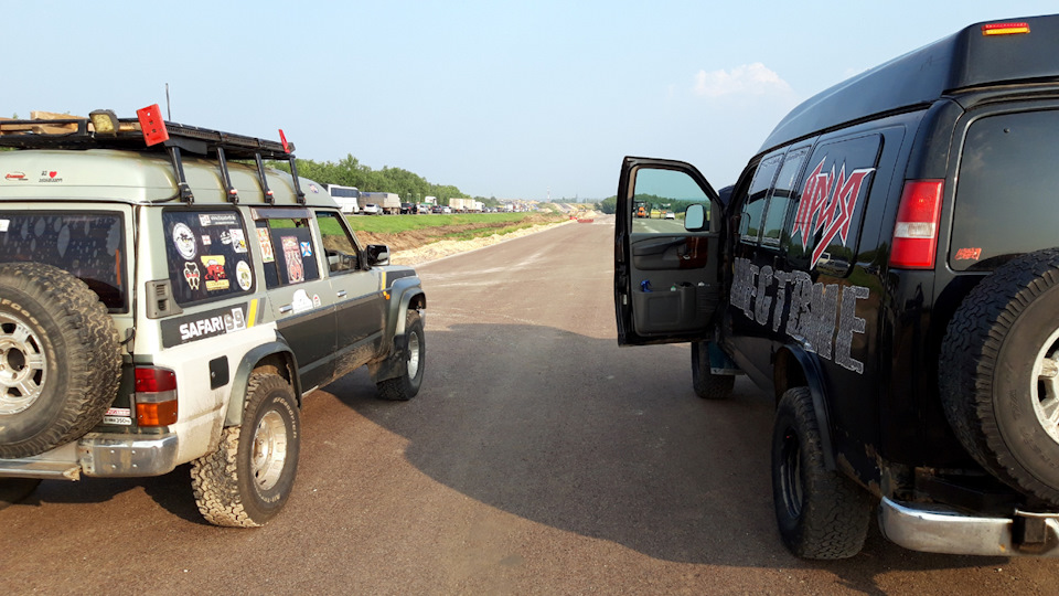 Выехали в Крым двумя машинами. Но под Воронежем у Александра сломалась коробка, не включалась выше 2-й передачи. И мы решили свернуть в Ейск. Пробки по несколько километров в Лосево и в В.Мамоне.