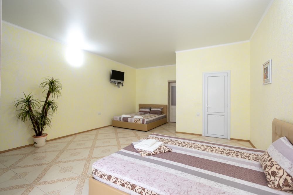 Потрясающий гостевой дом! Свежий, хороший ремонт. Удобное месторасположение. Рядом кафе (мин. 10 пешком), магазины (2 мин), мини рынок (5 мин). Мы жили в номере Комфорт. Номер просторный, чистый, есть все необходимое (телевизор, кондиционер, холодильник). Полотенца меняли через день, приборка раз в 3-4 дня (со сменой постельного) Персонал очень добрый, отзывчивый. Пламенный привет горничной Марии) Огромный плюс - это наличие бассейна и детской площадки. Для отдыхающих с детьми - очень важно. Услуги прачечной - 200 руб. На пляж мы ездили на маршрутке №6 (остановка рядом, 3 мин), так как на центральном пляже очень много народу и грязно. Рекомендую пляжи Алмазный, Лазурный (песок), Новый пляж (галька) Огромное спасибо за гостеприимство!