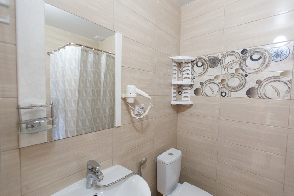 Хорошая гостиница. Есть свой двор с мангалом и бассейном. Немного неудобно продумана душевая кабина: штора слишком длинная, а по ширине короче, чем нужно, и вода вытекает на пол. Но в санузле есть половая тряпка, причём всегда новая. Также помимо банных принадлежностей дают тряпочку и губку для кухни, есть моющее средство для посуды. На ресепшене и во внутреннем дворе стоят кулеры с водой.