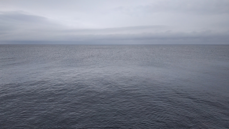 Тихо, тепло, начинающийся закат, и, растворившийся горизонт между бескрайним небом и большой водой.