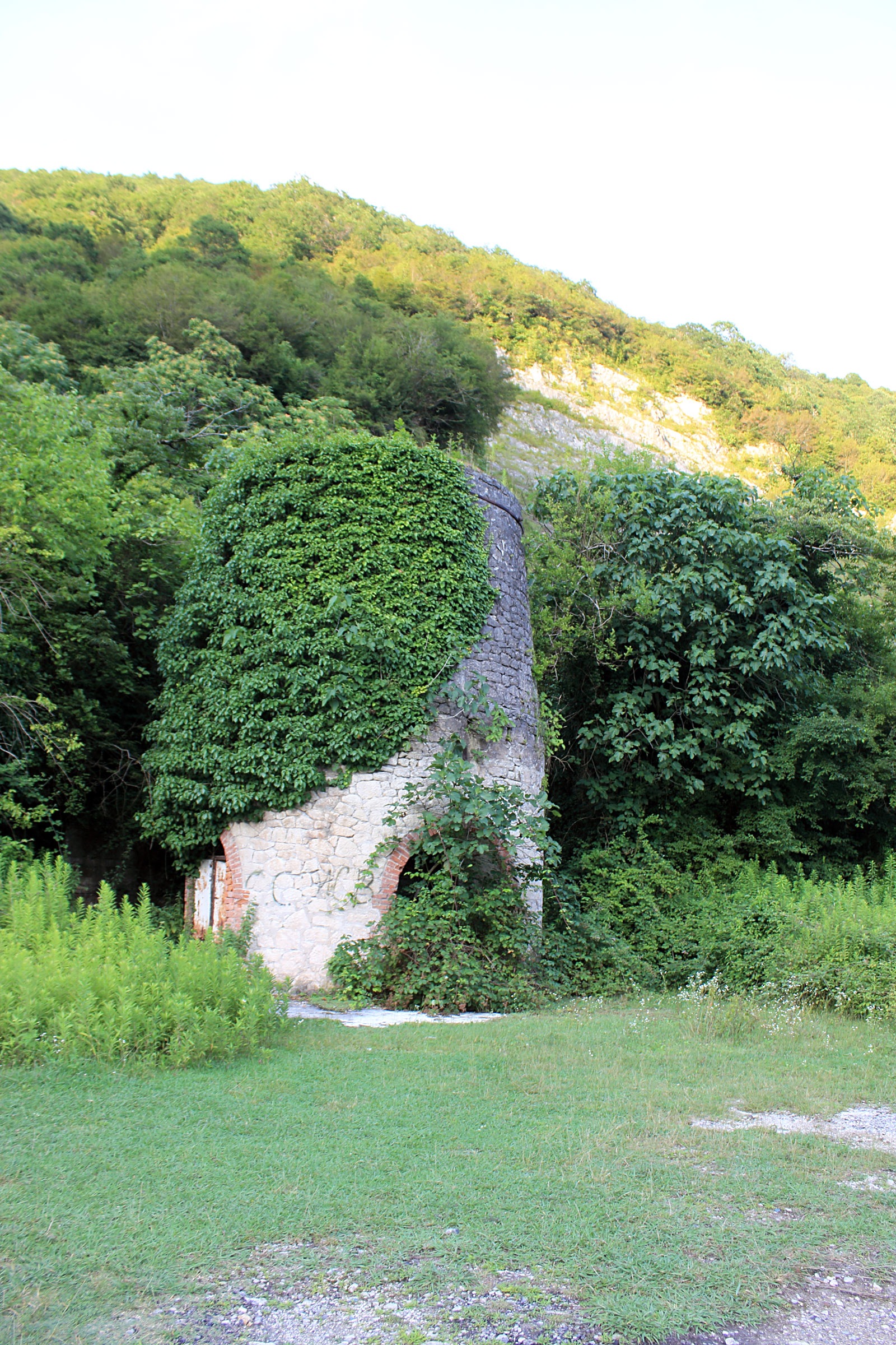 В храме приобрели книженцию – типа путеводитель по Абхазии, с тем, чтобы разнообразить свои покатушки. Вычитали, что в нескольких километрах от Сухума на реке Басла есть некая ГЭС постройки начала прошлого века. ГЭС, к сожалению, мы не нашли, даже наши челябинцы про нее почему-то не в курсе. Но доехали до другого уникального сооружения – арочного мостика (Беслетский мост), который также носит имя царицы Тамары. Славен тем, что построен по уникальной технологии, которая до наших дней не сохранилась. Да и обжигать известь для кирпичиков по 5-8 лет сегодня не у каждого хватит терпения :) Кстати, пара старинных печей для обжига извести — рядом.