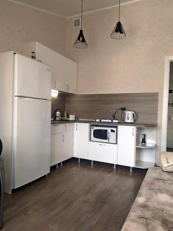 Василий, мы жили в двухэтажной даче, она на фото номер 1. И там был двухкомнатный номер. Комната где спали, там ещё было что-то типо гардеробной, а вторая комната была как кухня. С электроплиткой и холодильником. Так же стоял диван и в каждой комнате был балкон. В то время у меня папа начальником на комбинате работал, может поэтому мы в таком номере отдыхали, а может там ещё такие номера были. Я, к сожалению, тогда не сильно об этом задумывалась.
