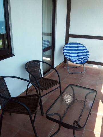 Вид на море с балкона, 2021 год Вид на море с балкона, 2021 годЛежаки выдаются бесплатно, но их может не хватать, поэтому занимать лежак лучше с утра, положив на него полотенце или пелёнку, можно дополнительно привязать к лежаку какую-то яркую верёвочку, чтобы издали было понятно, что лежак занят.