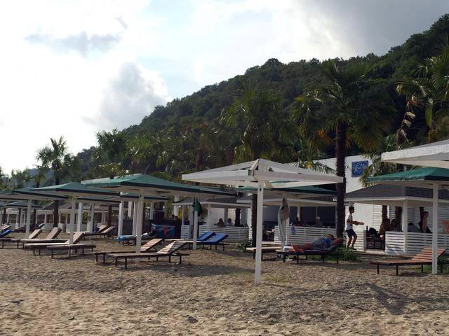 Пляж: в пансионате несколько пляжей, несмотря на это не хватает зонтиков, навесов, шезлонгов, как следствие – очереди за пляжным инвентарем.