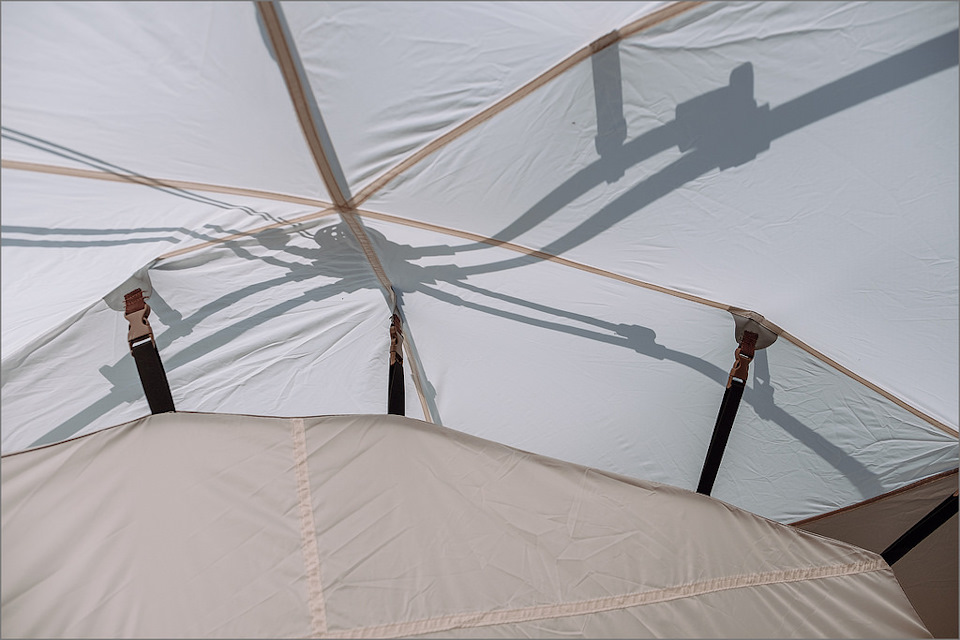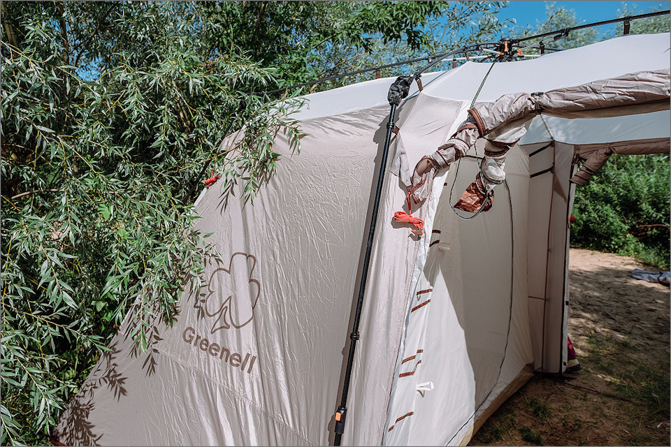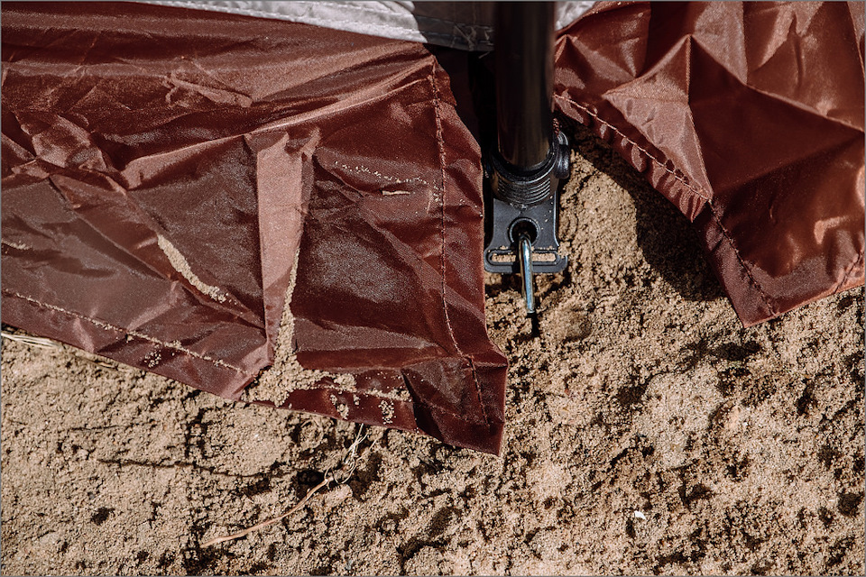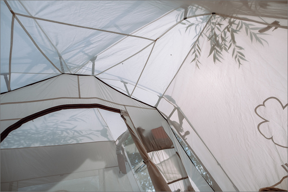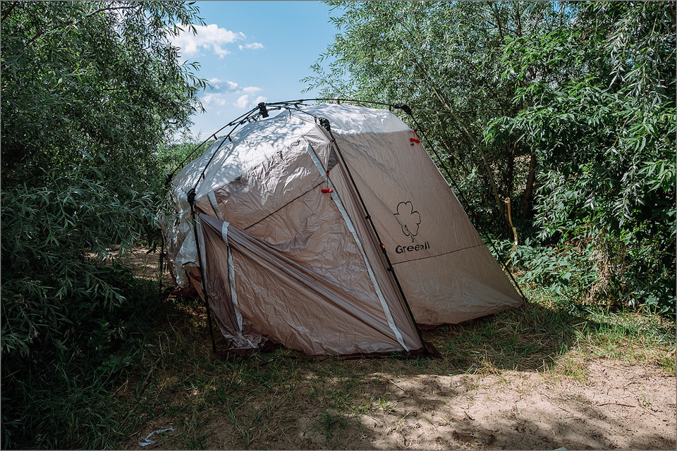 — светлый материал палатки, с одной стороны это полюс потому что она меньше нагревается, а с другой — утром там очень быстро становится слишком светло