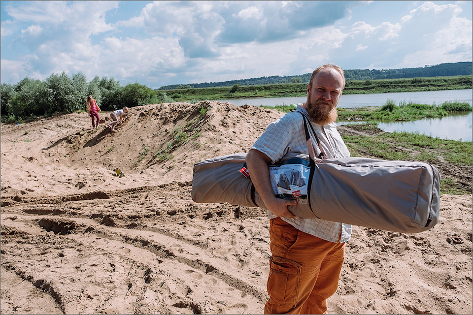 Особых требований к весу и габаритам не было — мы всегда на машине, в пешие походы не ходим, палатку на себе не таскаем. К теплоте и плотности материала тоже не было особых критериев — мы с палаткой ездим только летом, зимой это все-равно не комфортно.