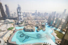 Из Burj Khalifa открывается вид на знаменитый Дубайский фонтан, крышу торгового центра Dubai Mall и заповедник Рас-аль-Хор.