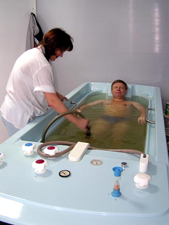 - Водолечение, включающее лечебные ванны, водный массаж, циркулярный душ, душ Шарко, а так же имеется ванна подводного вытяжения.