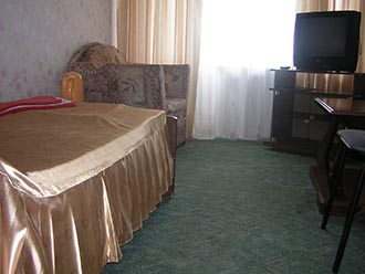 - В корпусе № 1, 4-этажном здании на 200 мест. Размещение в 1- и 2-местных номерах I категории; 2- местных II категории, номерах класса люкс, а также в номерах III категории для гостей по льготным путевкам. Во всех номерах есть жилая комната, телевизор, холодильник, санузел, балкон.