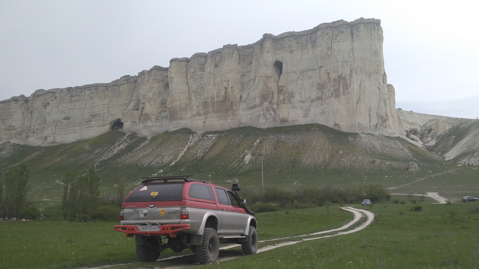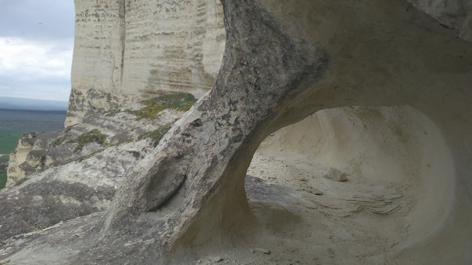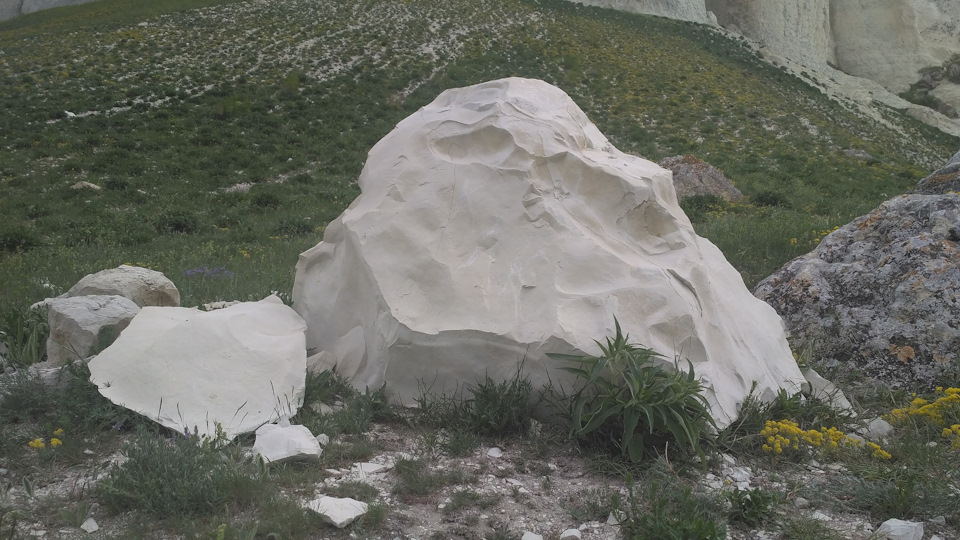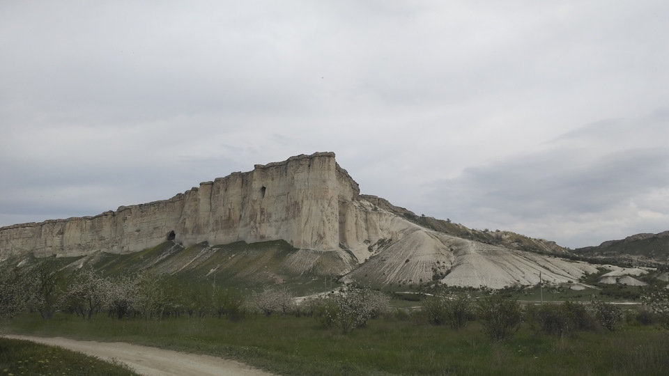 Белая скала конечно впечатляет. Огромный монолит, возвышающийся над плоскостью. Погода только была не очень для фотографий. Серое небо скрадывает контраст. Когда смотришь в гугле фотки Ак-Каи в солнечную погоду, то выглядит это все более эпично. Белый-то камень на фоне зеленой травы и голубого неба. Но не сложилось :(