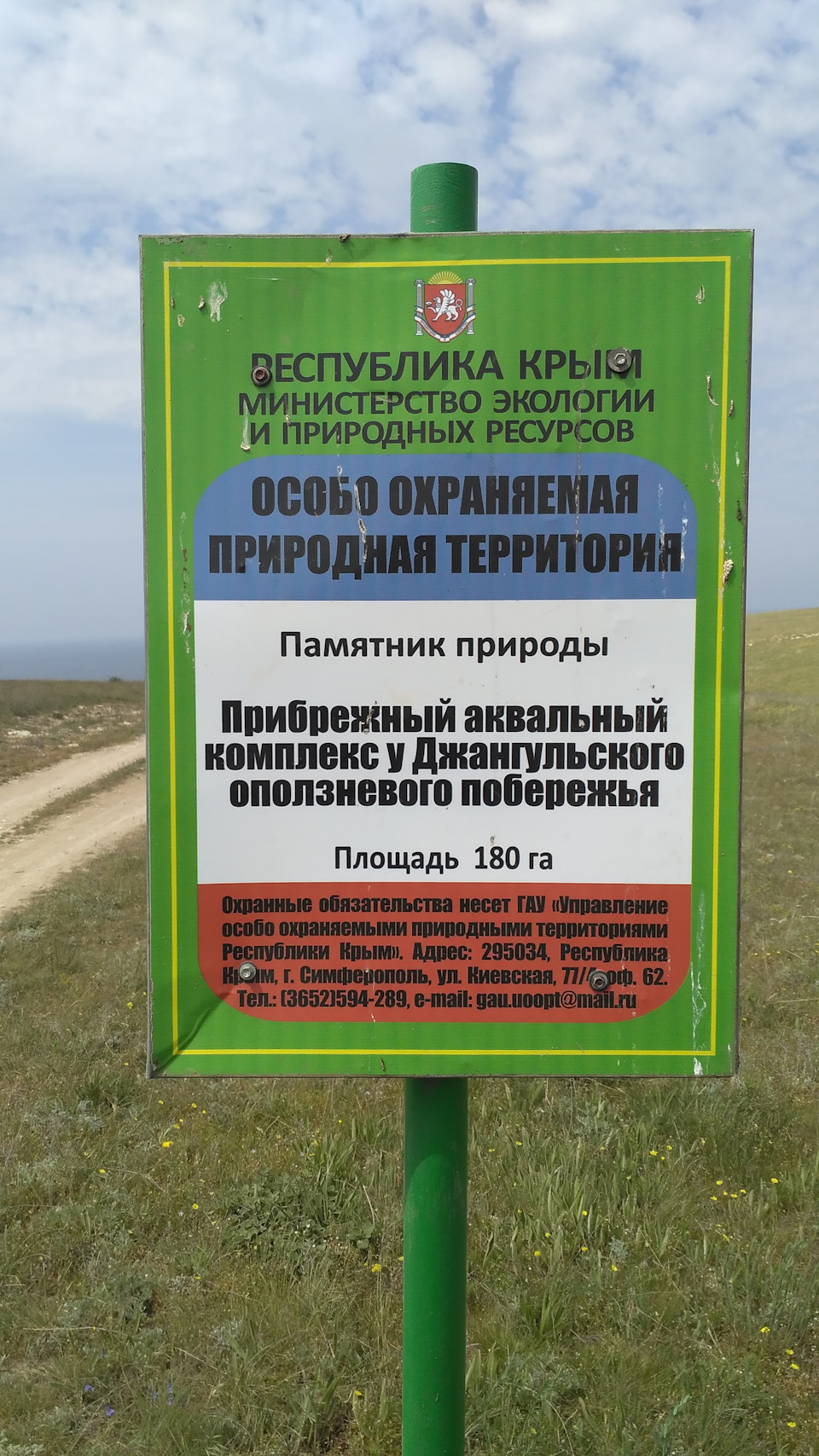 Незатронутая еще часть Джангульского побережья возвышается над морем на высоте 60 метров. С этой превосходящей точки можно наблюдать чудесные панорамы сползающих пород – заповедник Джангуль на карте Крыма геологических пластов, земли с травой и кустарником.