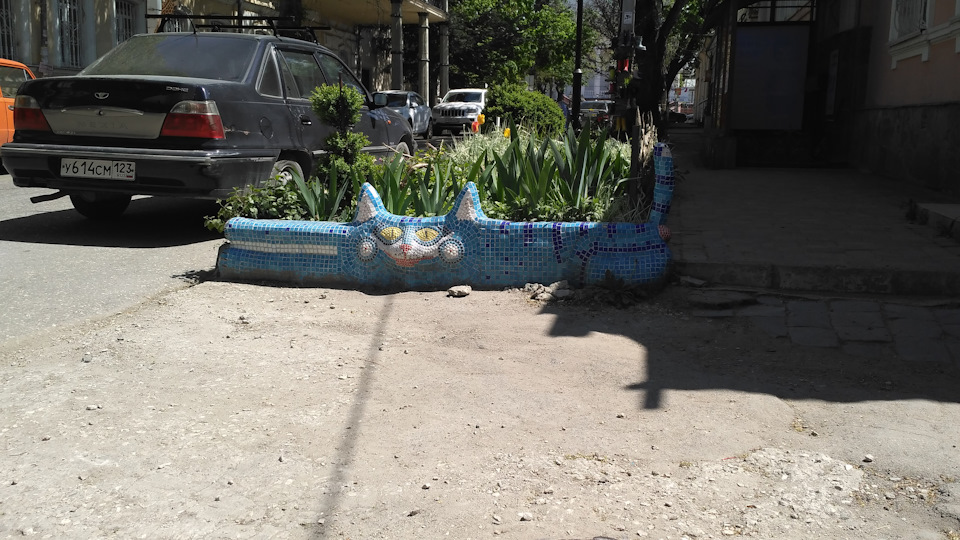 Мне всегда нравилось гулять по южным городам. В них на улицах всегда есть много мелких, но интересных деталей. Например, клумба-мозаика в виде кота.