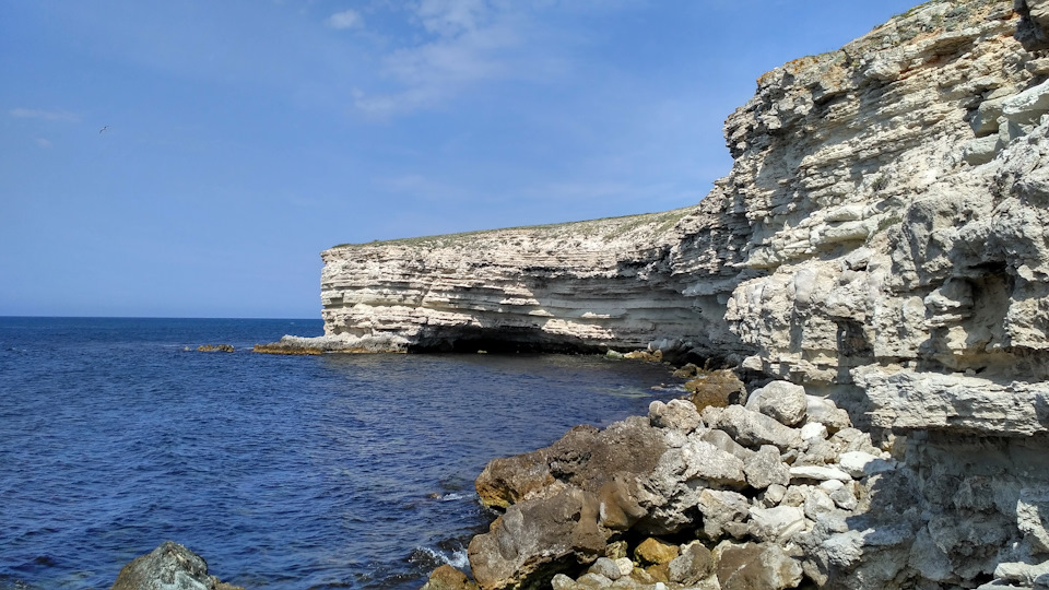 Почему стоит ехать в западный Крым. Урочище ДжангульВысота скал достигает 60, берег как бы отслаивается и сползает в море, виды просто невероятные. Береговая линия довольно причудливая, глубокие овраги сменяются балками, передвигаться вдоль моря довольно сложно.