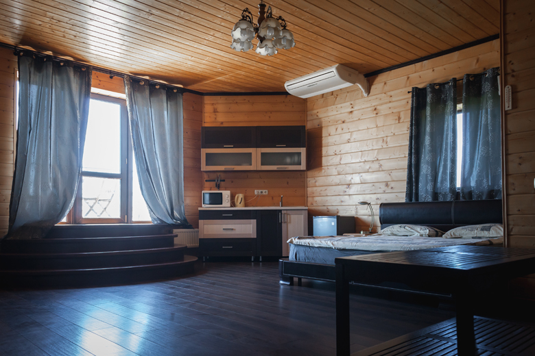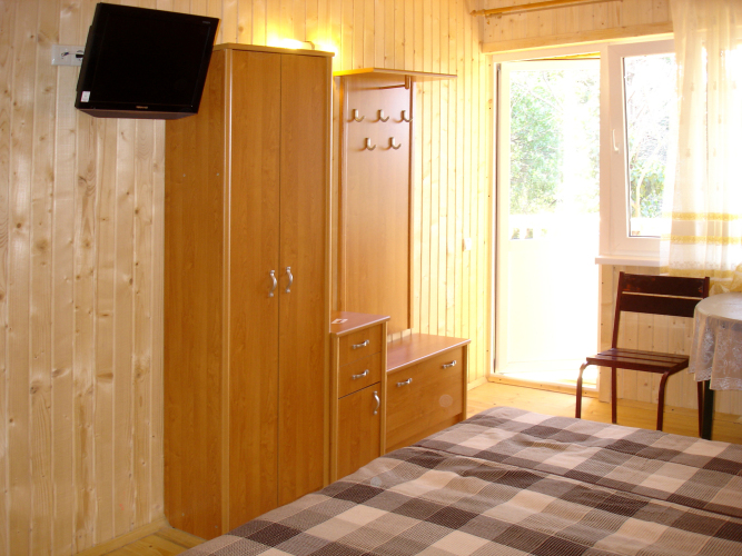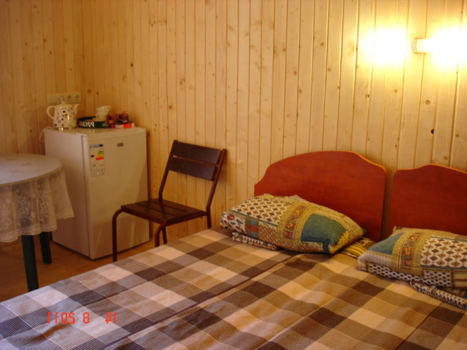 Номер выполнен из дерева без химической обработки. В номере телевизор, кондиционер, горячая, холодная вода (круглосуточно) , холодильник, интернет, парковка, Wi- Fi. Туалет, душевая.