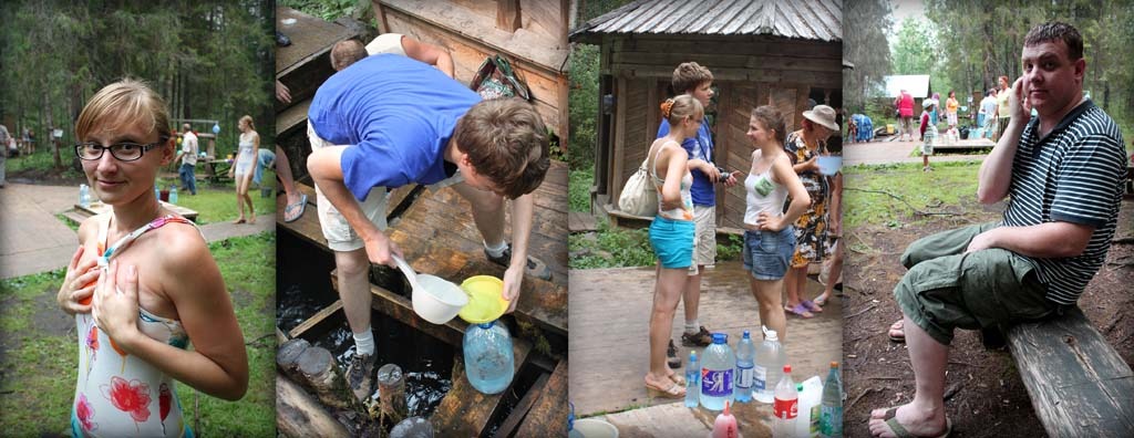 Взяли тару, спустились и набрали воды. Однако нас так манили крики людей из купальни, что сначала Полина, потом и моя женя, а там и мы с Сашей решили искупаться.