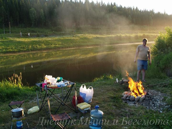 Ставили палатки прямо на горе. Не над входом конечно, в минутах в десяти ходьбы, ниже по течению. За водой ходили в Сылву.Никаких эксцессов небыло.