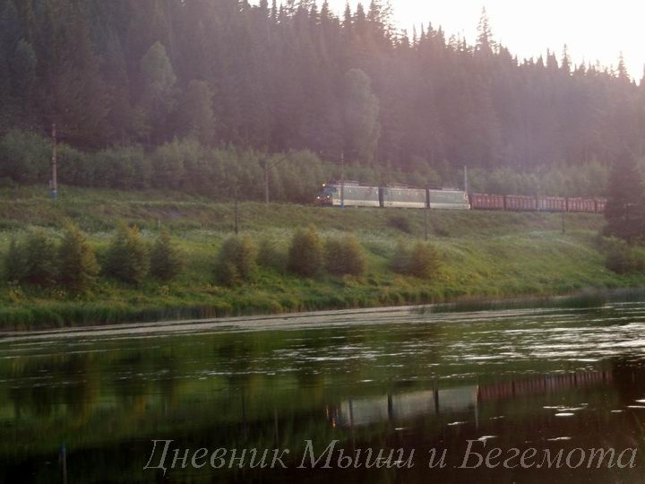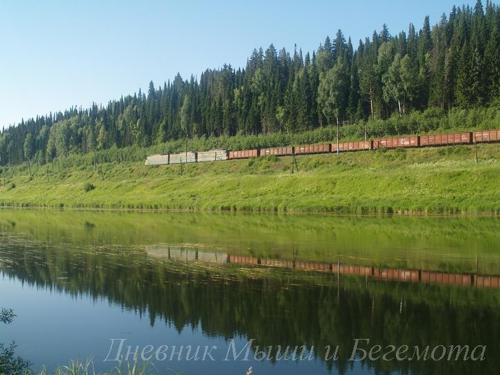 А мимо пролетают поезда… На противоположной стороне ж/д ветка Екатеринбург — Пермь. Движение довольно оживлённое.