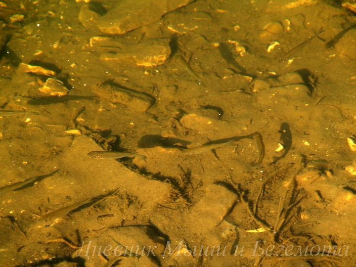 После завтрака идём купаться. Вода очень чистая и тёплая. У берега много мальков.