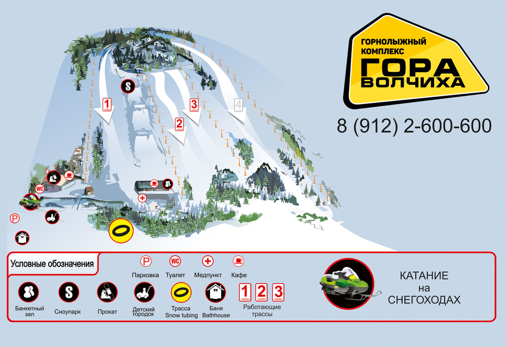 - Четыре трассы разного уровня сложности (плюс трасса для сноутьюбинга);