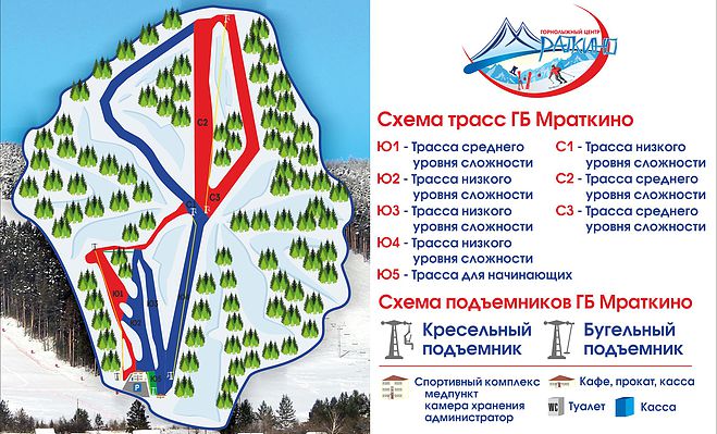 Со схемой расположения трасс и инфраструктурных объектов курорта можно ознакомиться на официальном сайте, в разделе «О комплексе».