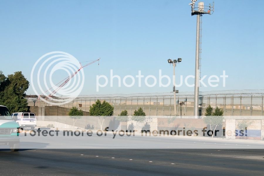 Аэропорт Тихуаны расположен через дорогу от границы. Вот так выглядит граница США и Мексики. Колючей проволоки не жалеют.