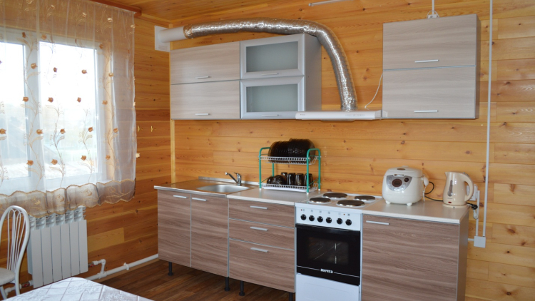В вашем распоряжение удобная кухня с наличием необходимой посуды, холодильником и электроплитой. Питание осуществляется самостоятельно либо по предварительному заказу. Рядом с домом можно приготовить шашлык.