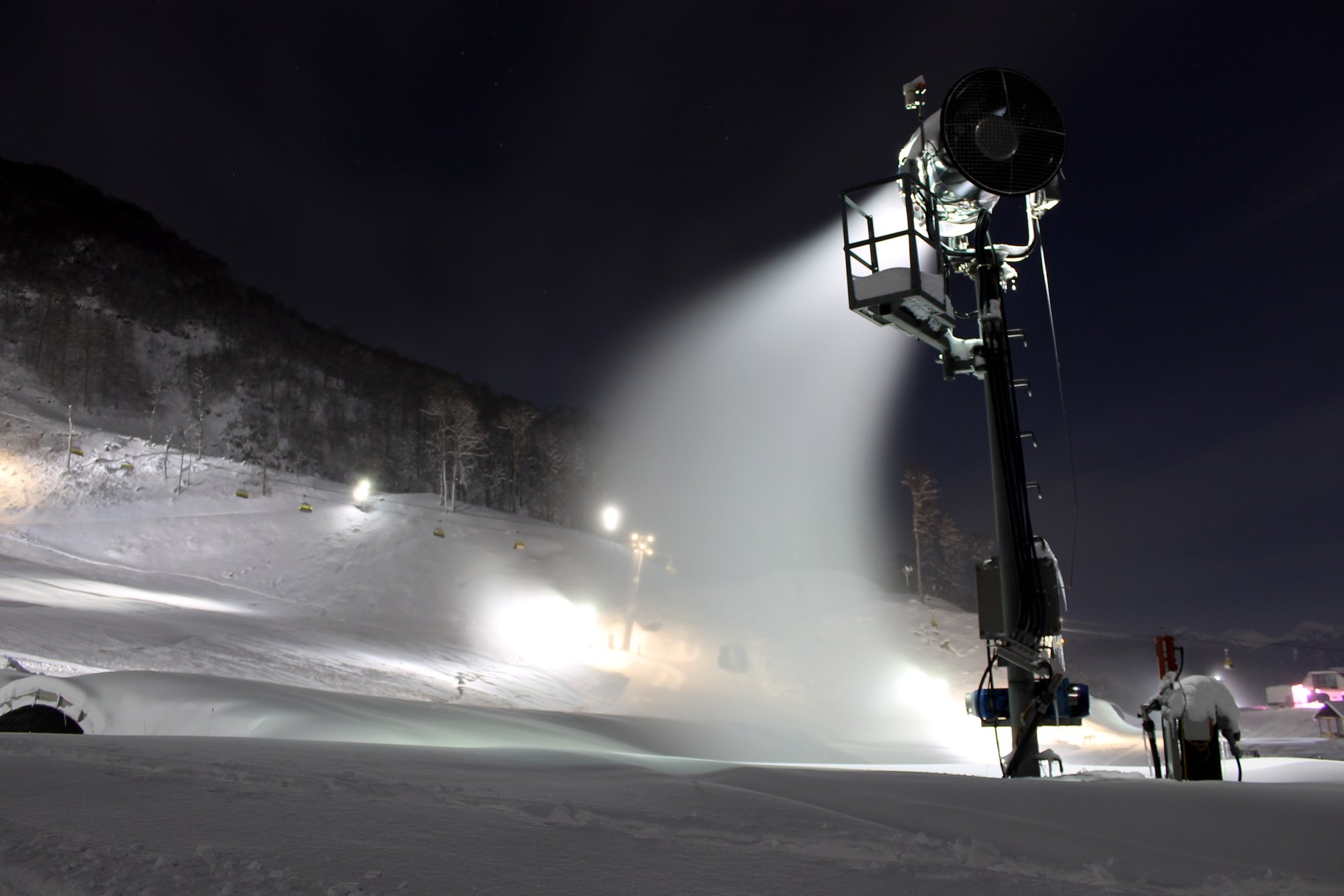 Без искусственного снега на горнолыжном курорте не обойтись. Даже если зима снежная, на трассы все равно распыляется искусственный снег, который состоит из маленьких кусочков льда, а не из мягких снежинок. В разгар сезона пушки по мере надобности включаются, чтобы ликвидировать недостатки на трассах. Но использовать пушки можно лишь при температуре не выше -3°C, иначе распыленная вода не будет замерзать и превращаться в снег.