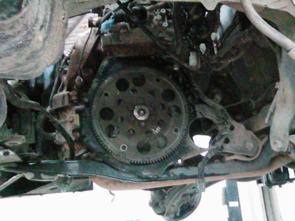 2. Коробка снимается с бубликом. Бублик от маховика откручивается снизу (предварительно сняв кожух). Маховик откручивается от коленвала уже когда коробка будет снята.