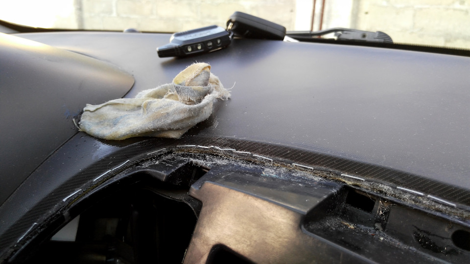 Многим Сидоводам известна такая проблемка- мягкий пластик приборной панели со временем отслаивается вокруг козырька приборов и центральной консоли и начинает немного топорщиться. Страшного ничего нет, просто внешний вид портится. Такая же фигня постигла и меня. Было принято решение снять консоль и козырёк приборов и подклеить отошедший пластик. Заодно заехал в АвтоКэмп и купил лист противоскрипного "Маделина", чтобы уж и проклеить козырёк и консоль.
