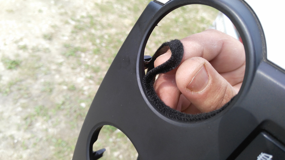 Теперь консоль висит на проводах климат-контроля (или кондиционера) и аварийки снизу и двух жгутах трип-компьютера сверху.