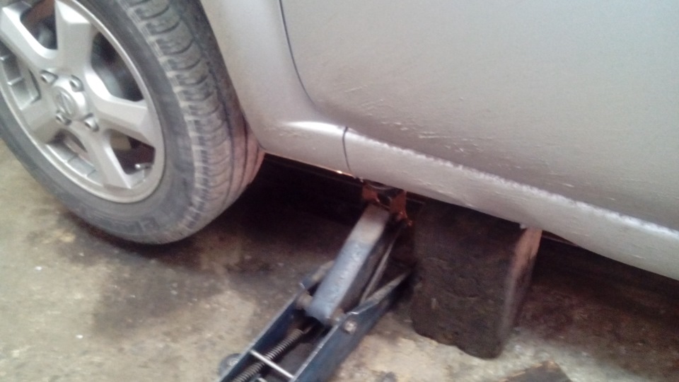Теперь снимаем колесо, подставляем вместо домкрата подставку.