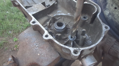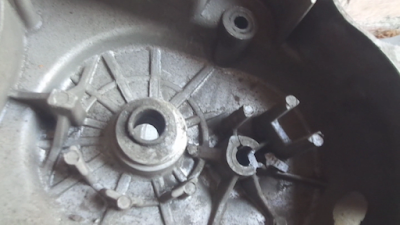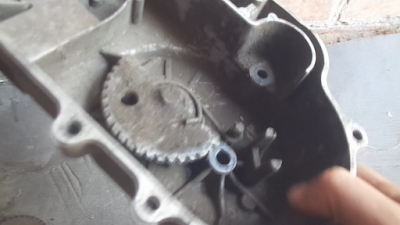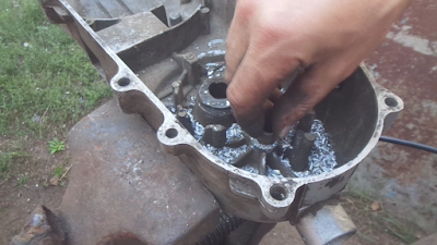 Чтобы этого избежать, нужно вовремя менять втулку приводного сектора шестерни или иначе говоря втулку вала лапки кикстартера. Втулку приводного сектора шестерни найти в продаже можно, а вот что касается разбитого посадочного места храповика, то здесь уже ситуация обстоит сложнее. Если здесь действительно место разбито, то замена втулки приводного сектора шестерней не поможет. Кикстартер по-прежнему будет клинить. Что же делать? Самый простой способ это заменить крышку вариатора, при этом уделите внимание: существуют как бы старые, крепкие крышки и современные более удешевленные, с тонкой стенкой. Поэтому обращайте внимание при выборе крышки. Лучше купить б\у, но в хорошем состоянии. Так как раньше крышки были более качественной нежели сейчас. Вот пример того что произошло абсолютное разрушения посадочного места храповика. Здесь уже особо ничего не сделаешь.