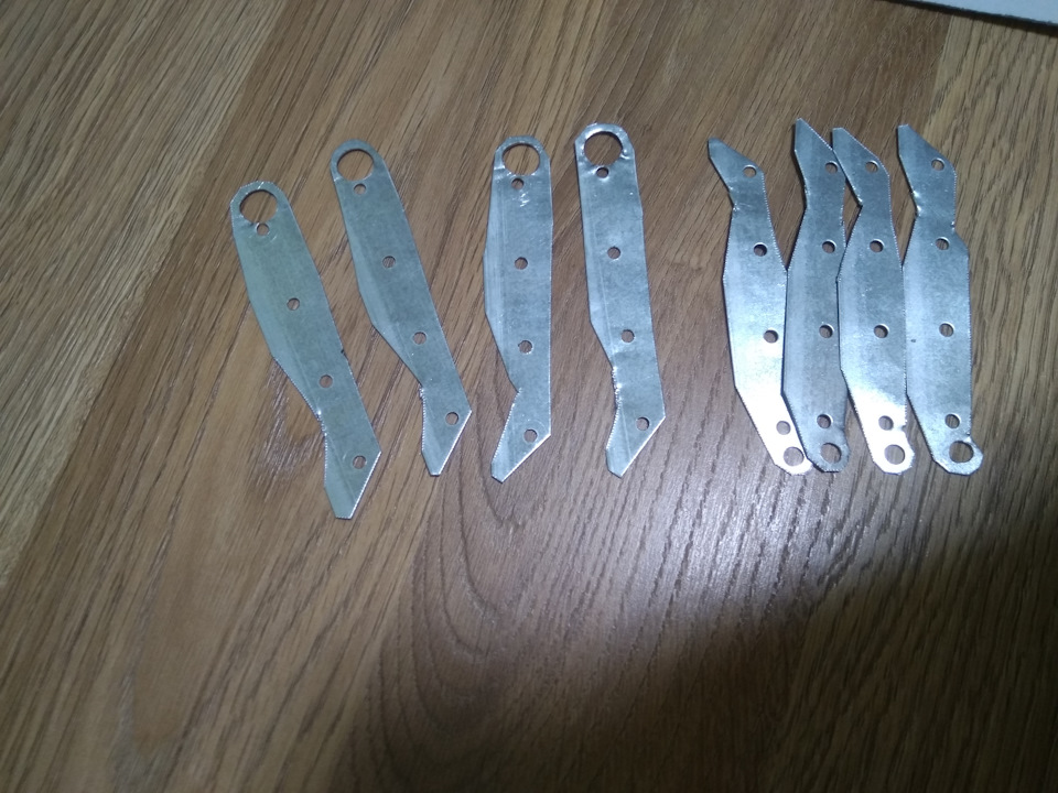 Для усиления тяг заслонок мне изготовили накладки из алюминия. Правда промахнулся с толщиной металла. Сделали из 4 мм. листа, хотя лучше сделать из 2,5. Тяги приклеил на эпоксидный клей и для надежности притянул небольшими саморезами. Между собой тяги скрепил осью изготовленной из электрода диаметром 4мм. и пары гаек Хочу в этом месте уточнить, что ставте стягивающие оси в то же место, где стояли старые. Иначе будет задевать за заслонки.
