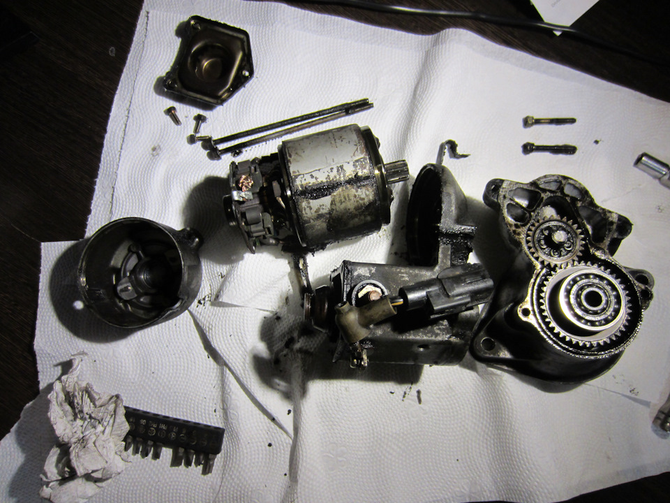 Стартер начал срабатывать не с первого раза — чтобы он начал крутиться приходилось несколько раз вращать ключ туда-сюда. С каждым днем завести машину становилось все сложнее. Немного почесав репу я пришел к выводу о том, что данные симптомы говорят о скорой неминуемой кончине самого стартера и с этим нужно что-то делать. Мне от прежнего хозяина авто достался запасной стартер, который я решил отревизировать и поставить вместо подыхающего.