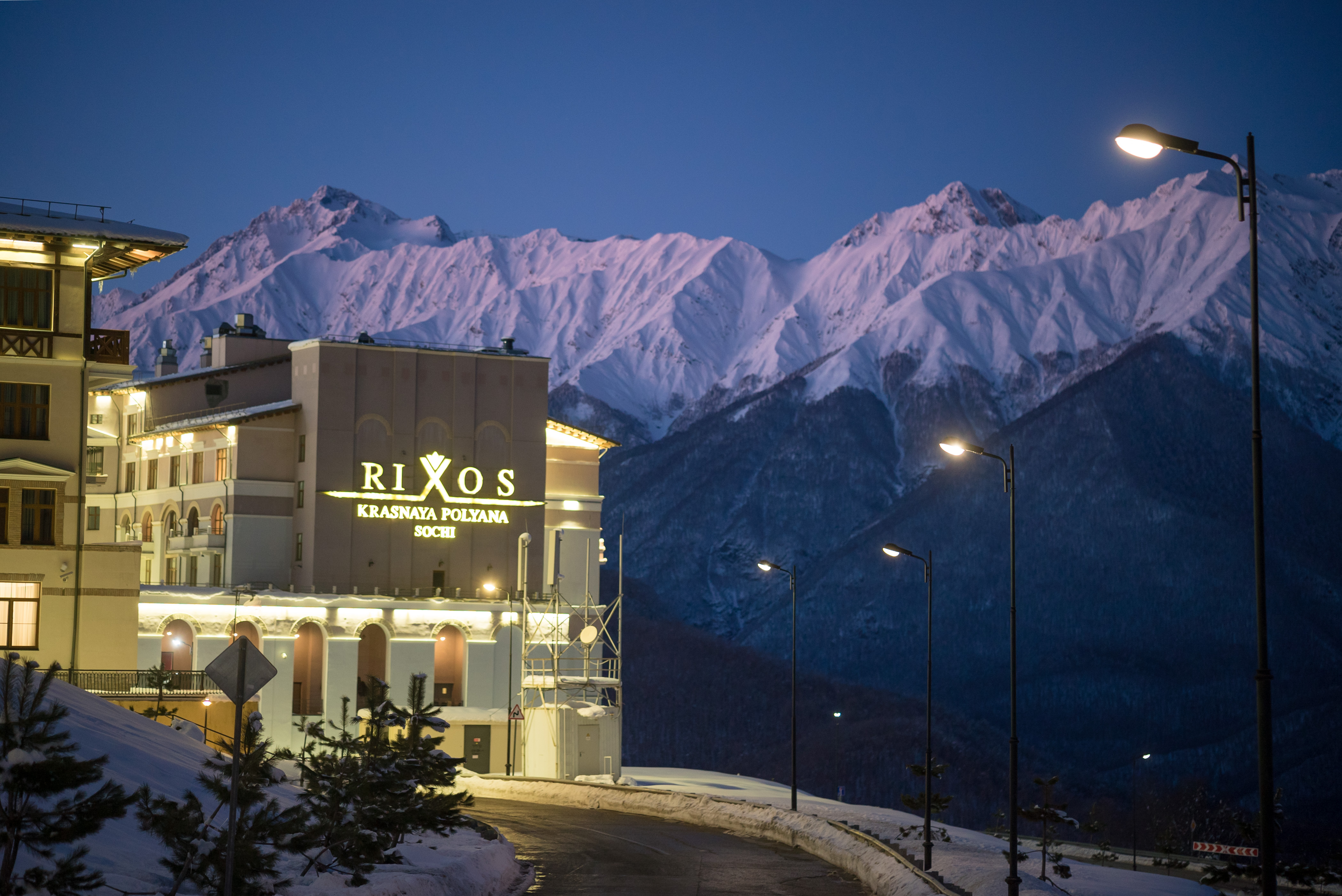 - Инфраструктура курорта включает отели мировых брендов: Marriott, Novotel, Rixos, Courtyard, Mövenpick, ibis Styles (1 436 номеров) и комплекс апартаментов (1 398 номеров), канатные дороги, кафе, рестораны, бары. Курорт имеет самую расширенную линейку отельных брендов международных гостиничных сетей в горах Красной Поляны.