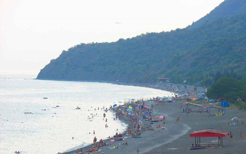Берег довольно таки большой и чистый. Чёрный песок и крупная галька. Народу не так уж и много, так что мест хватит всем. Друг на друге лежать не прийдется. 😊